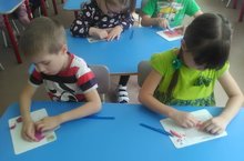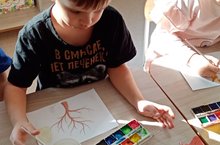 Педагог развивала у детей умение замечать красоту осенней природы. Ребята познакомились с новой техникой в рисовании - приёмом вертикального мазка.