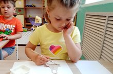 На занятии по рисованию дети татарской группы продолжали учиться рисовать кистью одуванчик. Выучили стихотворение и прослушали песенку "Одуванчик - это я".