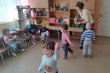 В режимный момент Макарова Л.Н. провела с детьми подвижную игру "Курочки и цыплятки".
