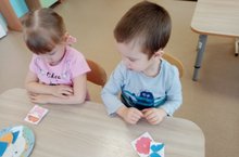 Воспитатель развивала у детей умения выполнять действия с предметами разной величины, а также мелкую моторику.