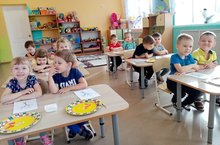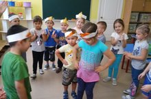На занятии дети учили новые слова на татарком языке: картофель-бәрәнге, лук-суган. А также разучили хороводную игру "Бар матур бакча-Есть красивый огород". В конце занятия повторили игру "Сосчитай - Сана"