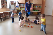 На занятии Ольга Анатольевна развивала у малышей внимание, наблюдательность и учила сравнивать предметы по величине и цвету.