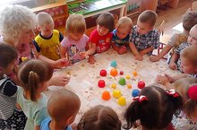Наши малыши, которые впервые в этом году переступили порог детского сада не дают скучать своим воспитателелям, а воспитатель Комлева Ольга Анатольевна отвелекает их проводя в игровой форме гимнастику для пальчиков, развивая тем самым мелкую моторику рук.