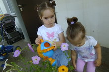 Чтоб цветочки не грустили, их водою напоили.