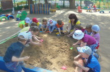 Учимся сооружать постройки различные по высоте, обыгрывать их. Применяем в игре свои знания о свойствах сухого и влажного песка. Учимся взаимодействовать со взрослыми и сверстниками.