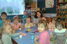 Старший воспитатель Имамутдинова Н.Р. и дети средней группы.