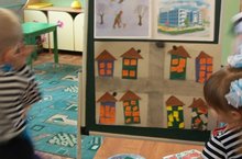 Коллективная аппликация в татарской группе "Дома на нашей улице" учит детей радоваться результатам коллективного труда. Провела Савинова Г.А.