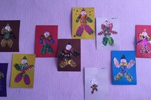 Создать атмосферу радости у детей в группе и одновременно познакомить их с профессией клоун получилось у воспитателя старшей группы Комлевой Ольги Анатольевны. Из бросового материала (конфетных фантиков) они мастерили использую ножницы и клей веселых клоунов. В результате у каждого ребенка получился забавный человечек, который радовал глаз их родителей, а сами ребята научились правильно срезать углы у прямоугольника, располагать изображение на листе бумаги, закрепили знание цвета и формы. В итоге у всех создалось радостное первоапрельское настроение.