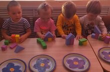 Конструирование во второй группе раннего возраста "Домик со скамеечкой".
