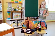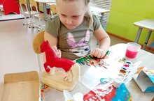 В татарской старшей группе воспитатель провёл индивидуальную работу по росписи деревянной лошадки.
