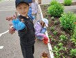 Во время прогулок дети совместно с воспитателями ухаживают за растениями.