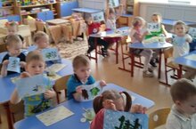 В младшей группе было проведено занятие по рисованию на тему: "Зима". Дети учились передавать в рисунке картину зимы; рисовать деревья, ели; учились располагать несколько деревьев.