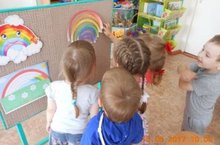 В рамках тематического дня "День радуги" воспитатель Федорова О.А., провела конструирование с детьми младшей группы на тему "Составь радугу" . Дети учились составлять правильную последовательность спектра цветов радуги,закрепили название цвета.