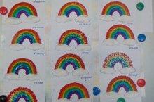 Ребята старшей группы, под руководством Левшиной О.В, выполнили работу в нетрадиционной технике пластилинография на тему «Радуга после дождя».