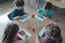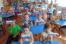 На фото дети младшей группы, которые под руководством Миндубаевой А.М., рисовали флаги России