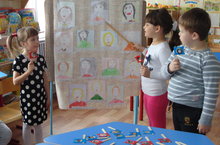 В детском саду идет подготовка к Дню победы. Дети разучивают стихи и песни, а педагоги оформляют групповые комнаты и фойе к этому празднику.
