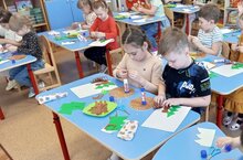 Цель: Развивать умение рисовать тычками, заканчивая изображение в ограниченной поверхности.