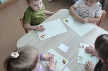 С детьми средней группы проведено занятие по аппликации на тему:"Тележка с игрушками", где учились составлять изображение из частей, правильно располагая и аккуратно наклеивая их.