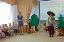 С новым учебным годом, дорогие педагоги, ребята и родители!В этот день наши воспитанники беседовали о наступившей осени, о 1 сентября, о школе; познакомились с презентацией, рассказавшей о Дне Знаний, девочки и мальчики читали стихи, которые они выучили с родителями; рассмотрели новые книги на выставке а в музыкальном зале их ждал незнайка, который пришел поздравить ребят с этим праздником и весело провести время -