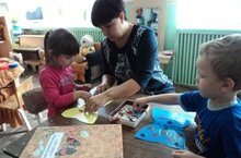 Дети второй младшей группы только начинают готовиться к изучению татарского языка, поэтому Шерстнева О.Л., уже в этом возрасте начинает знакомить их с обычаями татарского народа. Ее воспитанники с удовольствием украшают сапожки, фартучки, тюбетейки, вырезанными их цветного картона татарскими орнаментами и получают от полученного результата положительные эмоции.