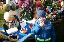 Сегодня в нашем районе традиционно состоялась осенняя ярмарка. Артисты веселили публику песнями, шутками да прибаутками. Желающие могли попробовать блинчиков с горячим чаем. Главная же забава у детей - конкурсы, да выставка поделок из овощей и фруктов. В этот раз наш детский сад представляла Царевна-лягушка, которая угощала всех желающих ягодами. За свое гостеприимство, она получила от мера нашего поселка, Харитонова А.С. денежную премию.