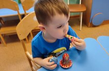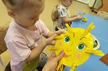 С детьми первой группы раннего возраста, на занятиях в игровой форме, воспитатель Поповнина Е.П., для развития сенсорных способностей и мелкой моторики рук, использовала различные упражнения и игры: прищепки, вкладыши, втыкалочки, нанизывание бус на верёвочку.