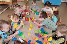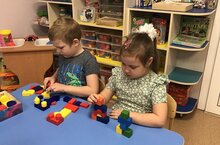 Дети первой группы раннего возраста, знакомились с уточкой. И развивая конструктивные способности обучались строить для нее домик.