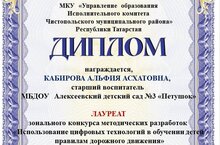 16 ноября 2022г., были подведены итоги Зонального конкурса методических разработок "Использование цифровых технологий в обучении детей правилам дорожного движения". Педагоги Кабирова А.А. и Фомина Н.А. приняли участие, Кабирова А.А. стала лауреатом. Поздравляем педагогов.
