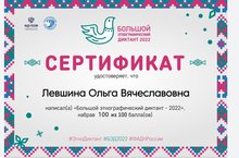 5 ноября 2022 года, воспитатель Левшина О.В. приняла участие в VII Международной просветительской акции "Большой этнографический диктант 2022".