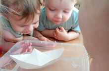 В рамках тематической недели "Морские просторы", дети первой группы раннего возраста познакомились с водным транспортом - корабликом, дети выполняли дыхательное управление "Кораблик". Муз.руководитель Антонова С.Н