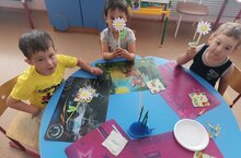 В рамках тематической недели " Ромашковое счастье", дети младшей группы закрепили знания о цветах и сделали аппликацию "Ромашка".