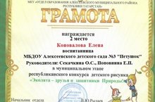 Воспитанники старшей группы МБДОУ №3 «Петушок» Королев Захар и Зайдарова Эльза, заняли 1 место, в номинации "Экологическая традиция детского сада", руководители Кабирова А.А. и Антонова С.Н.