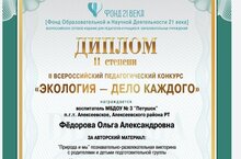 Подведены итоги II Всероссийского педагогического конкурса "Экология - дело каждого", поздравляем с победой, 2 место, воспитателя Федорову О.А., желаем творческих успехов!