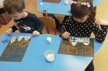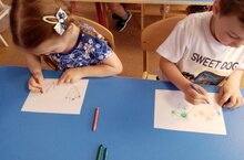 Дети старшей группы рисовали салют над городом, в честь праздника Победы.