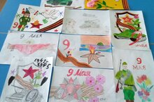 В рамках недели "Этот день Победы", дети подготовительной группы рисовала на тему "День Победы", совместно с родителями участвовали в конкурсе" Открытка ветерану"