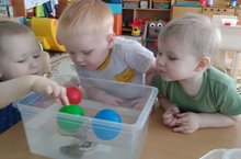 В рамках недели "Юные исследователи.Экологическая неделя", дети 1 группы раннего возраста познакомились со свойствами (легкий , плавает- шарик, тяжёлый, тонет- камень) Воспитатель Фёдорова О.А.