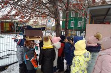 В нашем детском саду прошла экологических акция "Птичья столовая". Ребята старшей группы, смастерили совместно с родителями кормушки и повесили их на своём участке. Каждый день ребята стараются подкормить своих юных пернатых и наполнить кормушки разными угощениями. Воспитатель Ситдикова Р.Р.