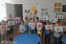 В детском саду началось веселое лето. Но педагоги не прекращают заниматься с ребятами творческой деятельностью. Педагог старшей группы, Миндубаева А.М., в рамках тематического "Веселые ладошки", изобразили с ребятами картины из ладошек.