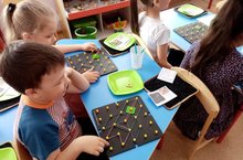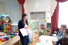 Педагоги ДОУ посетили занятие у воспитателя второй младшей группы, Кочевой И.А.. Ирина Анатольевна провела с ребятами занятие по теме «Путешествие на поезде». На занятии были использованы разнообразные задания с использованием блоков Дьенеша. Малыши определяли форму и цвет предметов, сравнивали их по величине, строили из них дорожки.