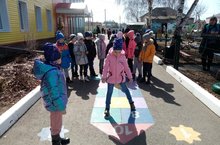 Космические игры на асфальте порадовали всех детей детского сада. Сегодня они устроили настоящие соревнования в классики под девизом «Вперед, к звездам!». Ведь на асфальте не просто классики, а настоящая ракета и звездное небо. Чтобы добраться до солнца, нужно правильно выполнить все задания.