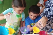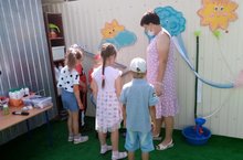 В рамках плана летней оздоровительной работы, педагоги ДОУ работали над проектов по созданию экспериментального оборудования на участке детского сада. Сапожникова Нина Витальевна активно использует данное6 оборудование в занятиях по экспериментально-исследовательской деятельности, которые она провела в «День воды». Ребятам больше всего понравились такие опыты как «Бежит ручей, течет река», «Торнадо в банке», «Растворились, или приземлились?», «Фейерверк»Подобные занятия развивают познавательную активность, любознательность, стремление к исследованию и экспериментированию с предметами, материалами, природными объектами. Дошколята учатся искать ответы на вопросы, высказывать догадки и предположения в ходе увлекательных экспериментов. -
