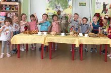 "ПИР НА ВЕСЬ МИР" 10.07.2020 Хорошей доброй традицией стало проведение «Дней народной культуры». Весь коллектив детского сада в эти дни направляет все свои творческие силы на проведение мероприятий, которые способствуют сохранению обычаев и традиций русского и татарского народов. В этот день педагог 2 группы раннего возраста, Левшина О.В., устроила в группе с ребятами «пир на весь мир». В этом мероприятии активное участие приняли родители воспитанников, именно они приготовили для ребят различные угощения.