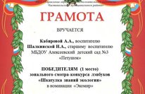 Педагоги ДОУ, Кабирова А.А. и Шалкинская Н.А., участвовали в зональном конкурсе лэпбуков "Шкатулка знаний экологии", проведенный на базе Чистопольского детского сада №28 и стали победителями (1 место) в номинации "Экомир".