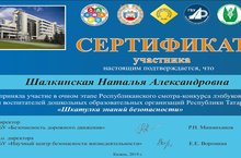 Старший воспитатель нашего детского сада, шалкинская Н.А., приняла участие в Республиканском конкурсе лэпбуков по ПДД "Шкатулка знаний безопасности, который проводился с целью создания методических условий образовательного процесса и оценки уровня профессиональной компетентности педагогов в применении интерактивных пособий по обучению дошкольников навыкам безопасного поведения на дорогах, на основании Положения с апреля по июнь 2019 года на уровне территориальных управлений проходил I заочный (районный/городской) этап республиканского смотра-конкурса лэпбуков «Шкатулка знаний безопасности». В смотре-конкурсе приняли участие 1518 педагогов из 686 дошкольных образовательных организаций Республики Татарстан.В ходе конкурса участники представляли авторские разработки лэпбука и видеоматериалы с мастер-классом по обучению дошкольников навыкам безопасного поведения на дорогах, которые отвечали таким требованиям, как содержательность и структурированность (соответствие ФГОС ДО, заявленной теме, психофизиологическим и психолого-педагогическим особенностям детей), возможность интеграции содержания лэпбуков в образовательные области, оптимальность и образовательная ценность, разнообразие представленного материала, оригинальность и творческие находки, вариативность, трансформируемость, доступность в использовании в совместной и самостоятельной деятельности, занимательность, эстетичность. По результатам I заочного (районного/городского) этапа смотра-конкурса определены участники II очного республиканского этапа (Приложение): 48 городских (районных центров) и 25 сельских дошкольных образовательных организаций Республики Татарстан.Экспертиза представленных работ на соответствие требованиям по критериям и показателям согласно Положению будет проводиться экспертным советом (жюри) с сентября по ноябрь 2019 года. По итогам II этапа 19 ноября 2019 года состоятся представление и защита 10 лучших работ педагогов городских и сельских дошкольных образовательных организаций, а также награждение победителей Конкурса.Пожелаем Наталье Александровне успехов на Республиканском этапе конкурса...СПИСОК УЧАСТНИКОВ ЧИТАТЬ НОВОСТЬ -