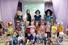 "Праздник цветов" организовали для ребят педагоги ДОУ. Праздник посетила настоящая Баба Яга, в роли которой выступила младший воспитатель Низамова Е., но вовремя появилась фея (в роли которой выступила Баранова О.Л.) и не дала испортить праздник.
