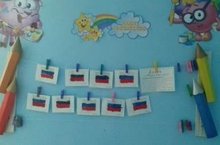 В рамках тематической недели "День народного единства" дети младшей группы " Пчелки" лепили "Флаг России". Воспитатель Гервасьева Т.Ю. обобщила с детьми знания о Государственном флаге России. Познакомила со значением цветов, изображенных на флаге Обучала детей пальчиками размазывать пластилин умение работать по шаблонам.