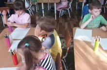 Рисование в старшей группе №2 "Звёздочки": "Осенние листья". Дети рисовали осенние листья, передавая форму и окраску.