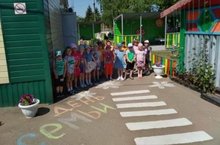 Дети старшей группы отметили 8 июля день Семьи, любви и верности. Рисовали на асфальте ромашку - символ семьи.