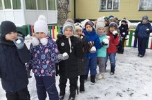 Воспитанники подготовительной группы на прогулке. -