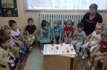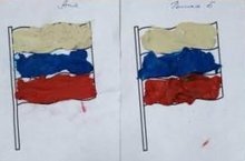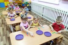 Педагог Куропаткина Н.Е. познакомила воспитанников младшей группы с цветами флага России. Учила детей пальчиками размазывать пластилин.